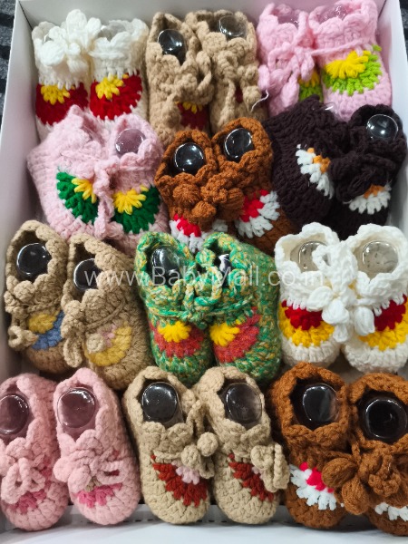 Description: Warm and cozy New Born Woollen Knitted Booties designed to keep tiny feet snug and comfortable. Made from soft, breathable wool with a hand-knitted texture for a gentle touch on baby’s delicate skin.
