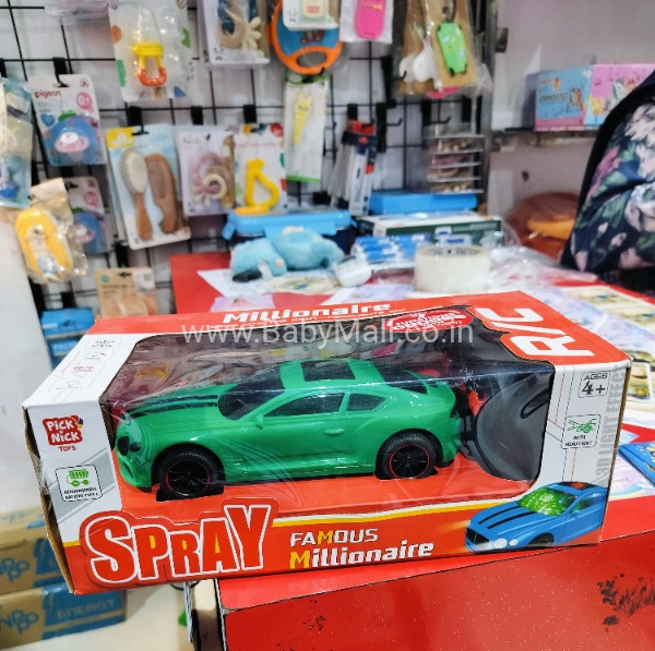 Description: Pick & Nick Spray Famous Millionaire Racing Car remote control rechargeable—stylish, high-speed RC car with spray effect for an exciting and realistic driving experience.