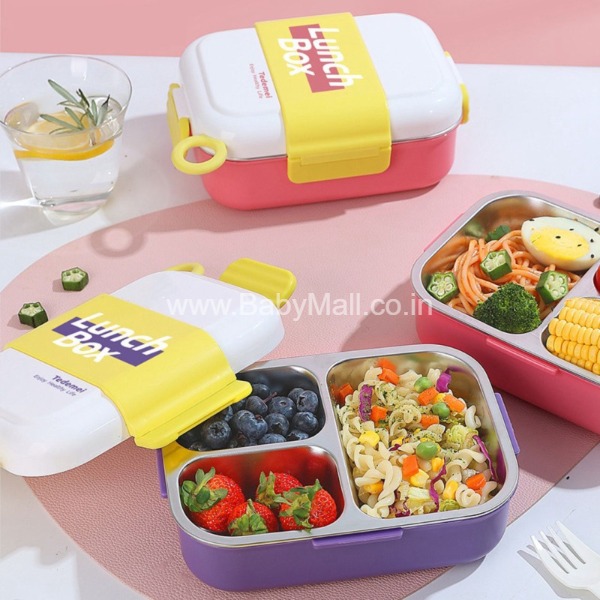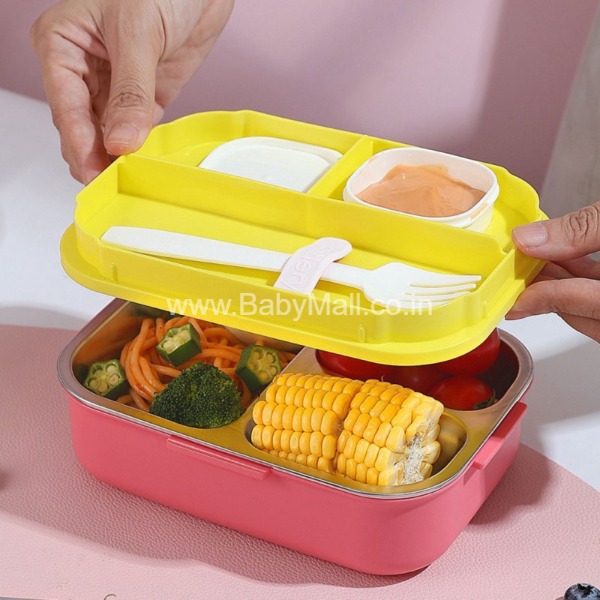 Description: TEDMIE Stainless Steel 3-Compartment Insulated Lunch Box with Sauce Bowl, 950ML. Designed to keep meals warm and fresh with separate sections for perfect food organization. Durable, leak-resistant, and ideal for school, office, and travel. Item No. RK-466-1.